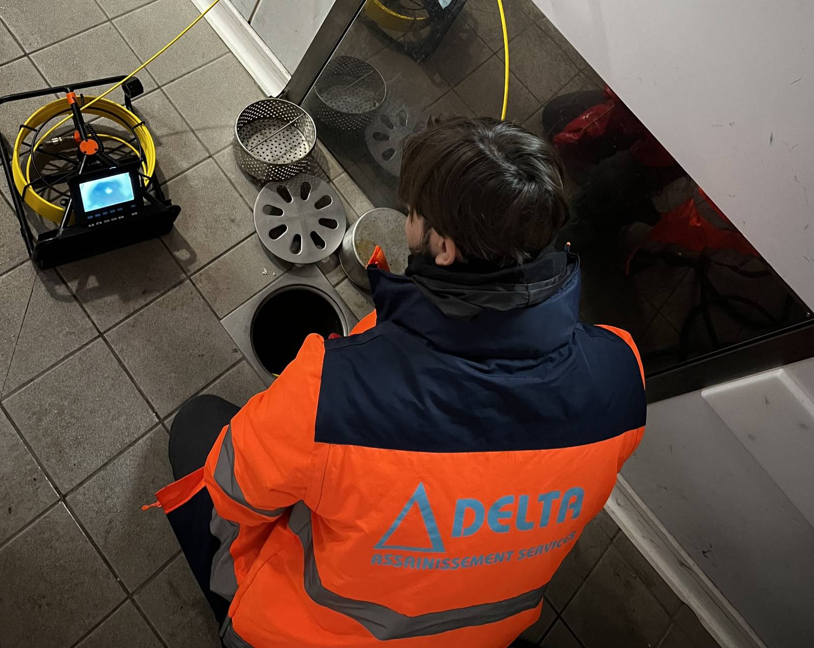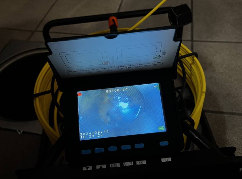 Enfin, une inspection vidéo a permis de contrôler l’intérieur des canalisations. Grâce à la caméra haute technologie utilisée, tout le réseau a été analysé. L’expertise a confirmé la nécessité d’installer un coude plongeant au niveau du bac à graisse, afin d’améliorer l’écoulement et d’éviter de futurs bouchons.